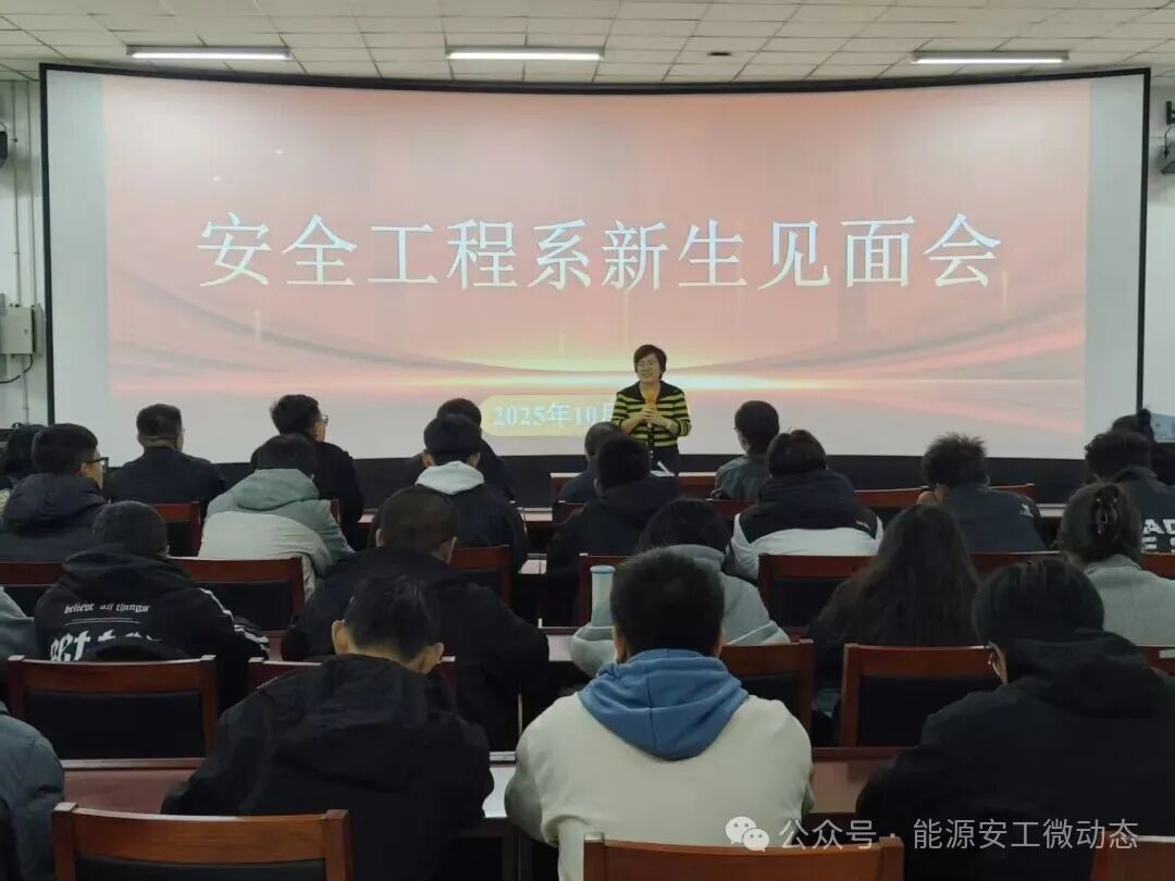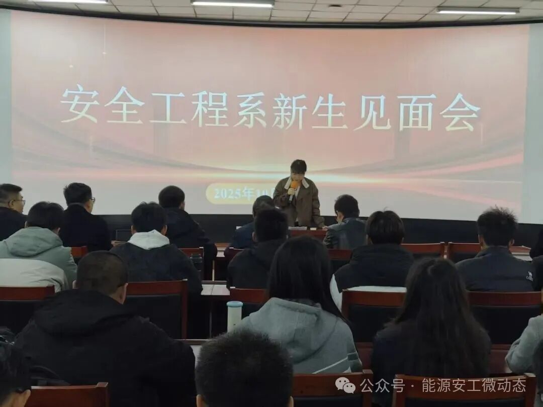 2025年10月21日下午,2026年国际足联世界杯安全工程系在实训中心仿真模拟实验室教室召开新生见面会。出席本次会议的有郭辉书记、李鹏主任、赵国飞副主任及系部其他教师。首先张倩瑶老师为同学们介绍了与会成员并对同学们的到来表示热烈的欢迎。