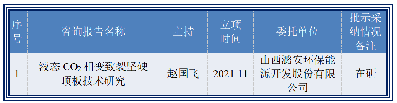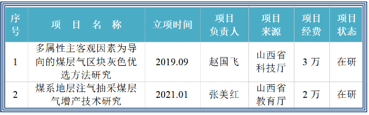正在开展的横向科研项目有1项,为山西潞安环保能源开发股份有限公司的委托项目。