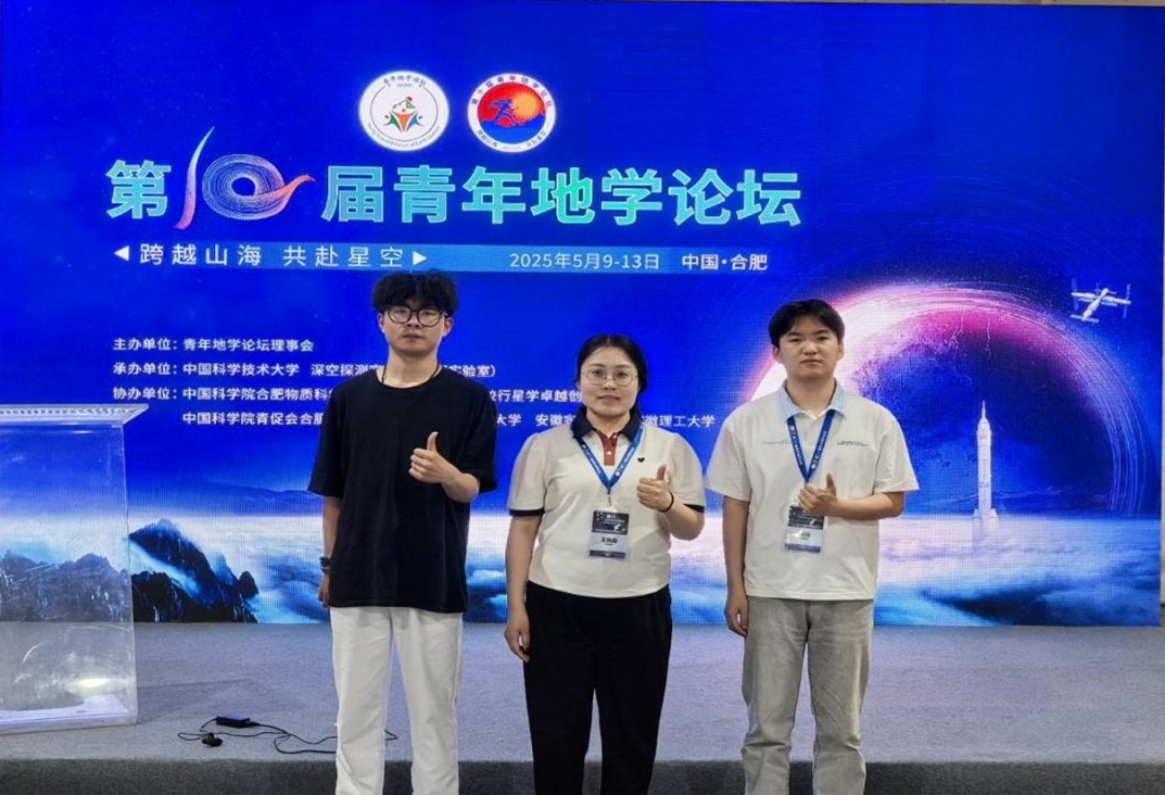 2025年5月9日至13日,第十届青年地学论坛在安徽省合肥市举行,此次论坛由青年地学论坛理事会主办,中国科学技术大学、深空探测实验室(天都实验室)承办,吸引了来自全国高校、科研院所及企业的5000余名专家学者和青年学生参与,我系教师王晓霞、21级资源勘查工程专业学生田政、22级地下水科学与工程专业学生崔江涛参会。会议期间,我系师生以口头报告形式展示了最新的研究进展,受到了在场专家学者和学生的关注与好评,展现了我系师生良好的精神风貌。