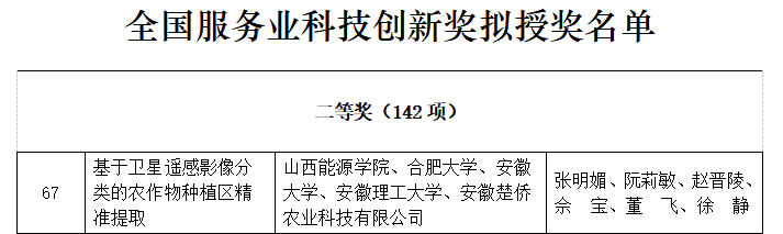 近日,第十七届中国商业联合会服务业科技创新奖获奖名单公示,地质与测绘工程系作为第一完成单位申报的《基于卫星遥感影像分类的农作物种植区精准提取》项目,荣获本届服务业科技创新奖二等奖。