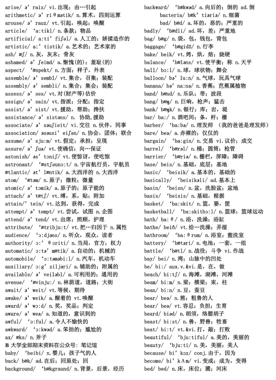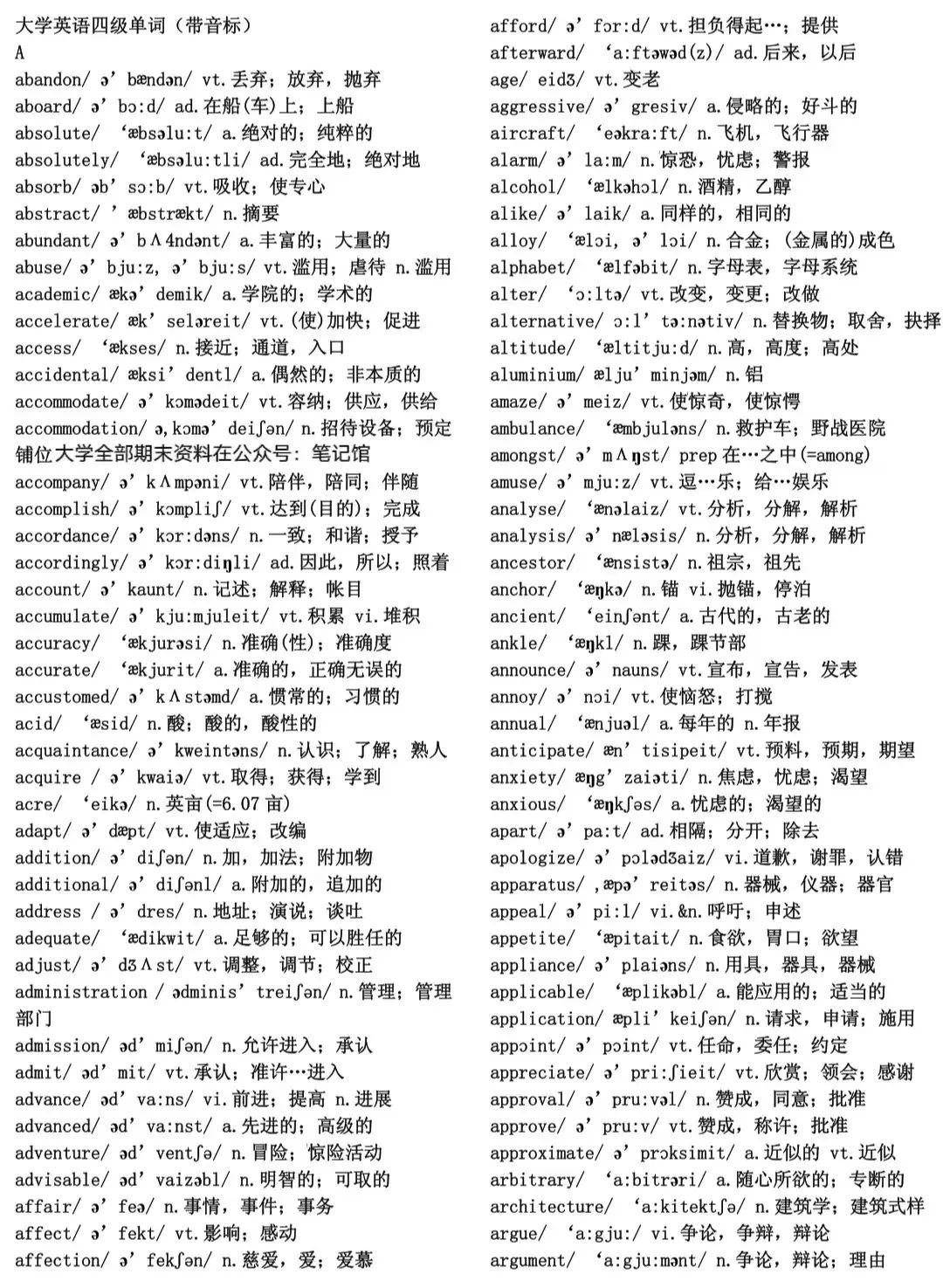 这些词汇不仅在四级考试中经常出现,而且对于提高日常英语交流和阅读理解能力也非常有帮助。希望大家能够认真学习,掌握它们的用法和搭配。