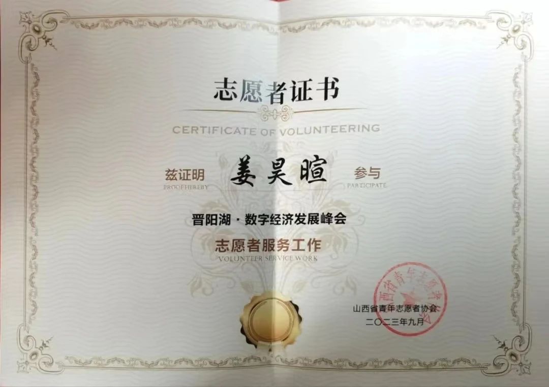 作为青年志愿者,姜昊暄同学利用寒暑假、周末、课余时间,积极参加并组织系部、大学城驻地、晋中市社区、家乡和山西省论坛峰会等相关主题志愿服务活动。他结合专业研学,锻炼自己;结合“返家乡”实践,参与社会治理;联系并走进社区,参与公益服务等。