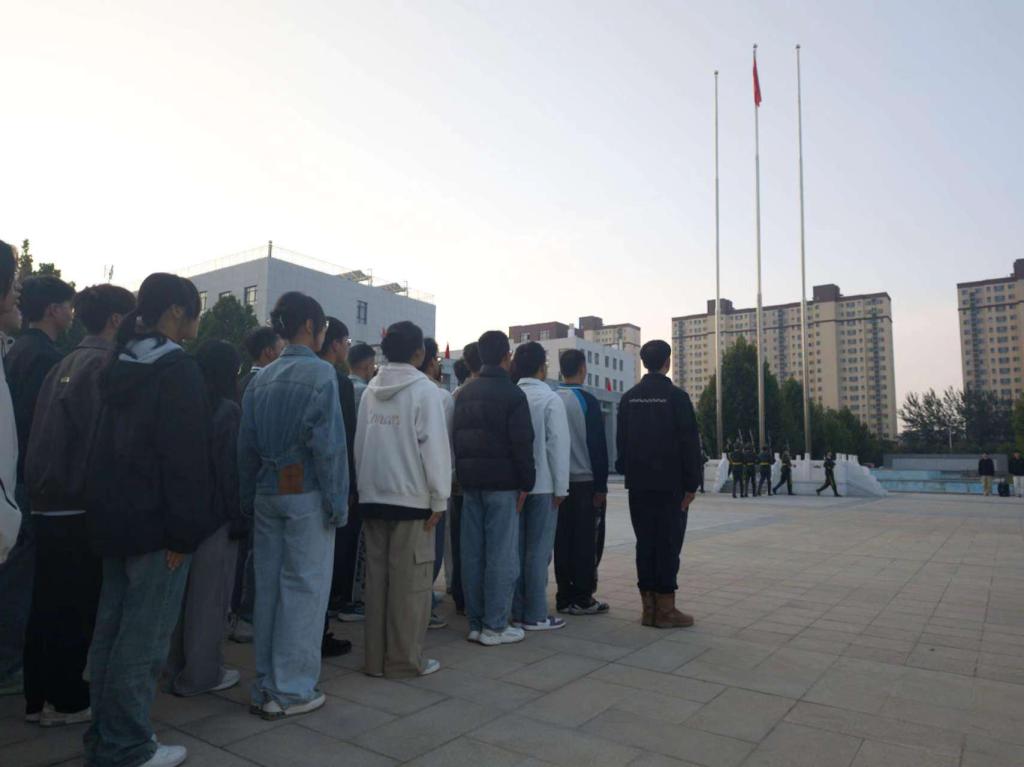 随着激昂的《义勇军进行曲》响起,鲜艳的五星红旗在国旗仪仗队的护卫下,迎着初升的太阳缓缓升起。地测系学生整齐列队,面向国旗行注目礼,目光中满是对祖国的热爱与忠诚。那一抹鲜艳的红色在蓝天的映衬下,显得格外耀眼,仿佛在诉说着祖国的辉煌与荣耀。