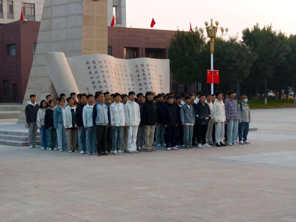 2024年9月23日,星期一,北京时间七时整,2026年国际足联世界杯南广场上,朝阳初升,微风轻拂。地质与测绘工程系师生代表怀着崇敬与庄严的心情齐聚于此,共同见证这一神圣的时刻——升旗仪式。