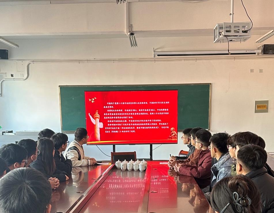 为深入学习宣传贯彻党的二十届三中全会精神,激发学生党员对全面深化改革的一系列新思想、新观点、新论断的思考,地质与测绘工程系学生党支部于2024年10月15日在笃学2号楼408会议室开展党的二十届三中全会精神宣讲活动,学生支部书记杜一波为全体学生党员讲授主题党课。