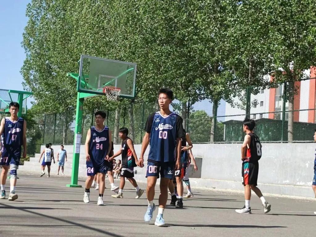 现场的气氛随着哨声的响起不断攀升,同学们个个精神饱满、情绪高涨,赛场上默契的配合、出人意料的远投、敏捷灵动的身影、激动高昂的呐喊、进球时的欢呼雀跃、失利时的加油鼓励、漂亮的抢断、完美的过人、三分线外的远投、一次次的篮下扑救构成了一幅幅扣人心弦的画面,球员们团结奋进的精神感染了在场的每一个人,他们用自己的激情与汗水传达着对运动、对生活的热爱,传达着团结互助的合作精神。