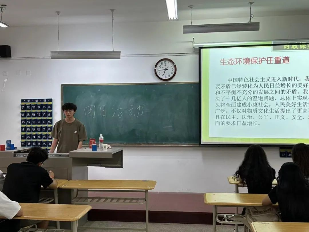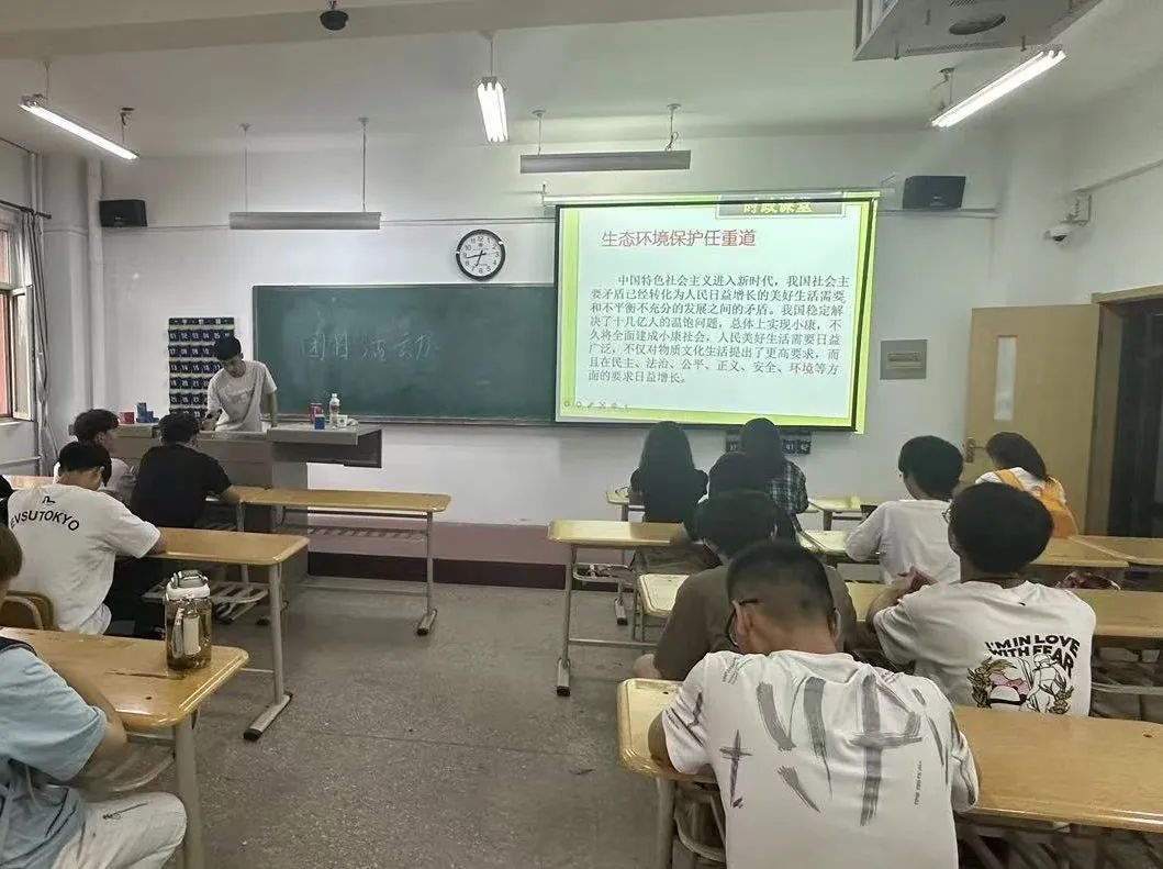 为学习贯彻习近平生态文明思想,组织开展生态文明宣传教育,引导广大团员和青年牢固树立和践行绿水青山就是金山银山的理念,积极投身美丽中国建设,以青春行动助力全面推进人与自然和谐共生的现代化。电气2301团支部在6月13日于3205教室开展“倡导绿色发展——美丽中国青春行”主题团日活动。