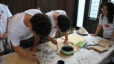 队员们按捺不住内心的冲动,亲自拿起毛笔,体验书法创作的过程。当毛笔轻轻触碰到宣纸的那一刻,他们便感受到书法带来的乐趣,然而,想要写出一手漂亮的字并非易事。起初,毛笔似乎不听使唤,笔画粗细不均,结构也歪歪扭扭,经过武乡县文联主席张红伟的指导,实践队员们逐渐掌握了一些基本的技巧,慢慢地找到了感觉。
