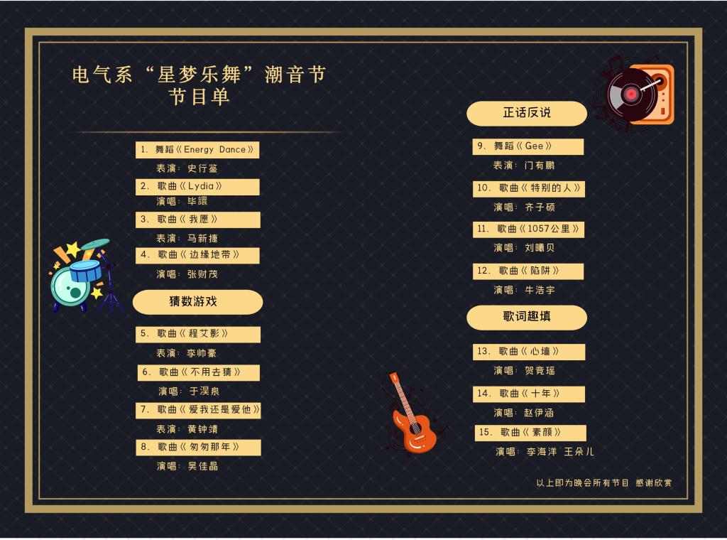 在这激情四溢的音乐节,愿你在其中尽情释放,跟随动感节奏摇摆,陶醉于每一个音符。让音乐治愈心灵,带走烦恼。这里是欢乐的海洋,希望你尽享美好时光,留下难忘回忆。11月19日晚上7点,电气与控制工程系将于综一阶举办“星梦乐舞”潮音节。