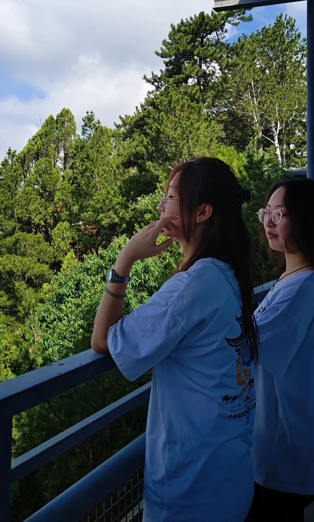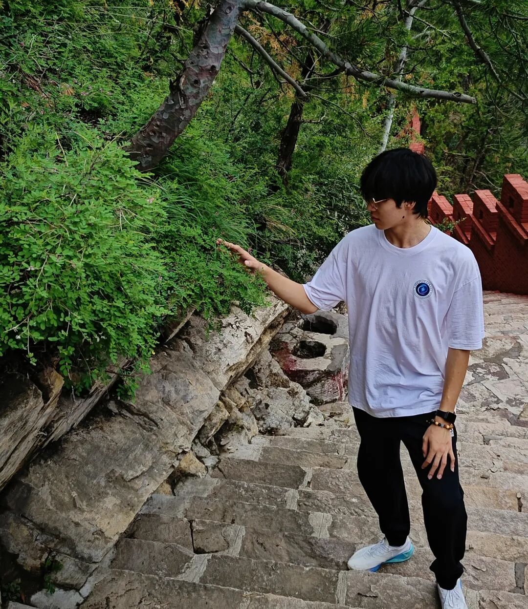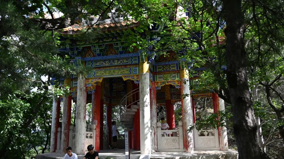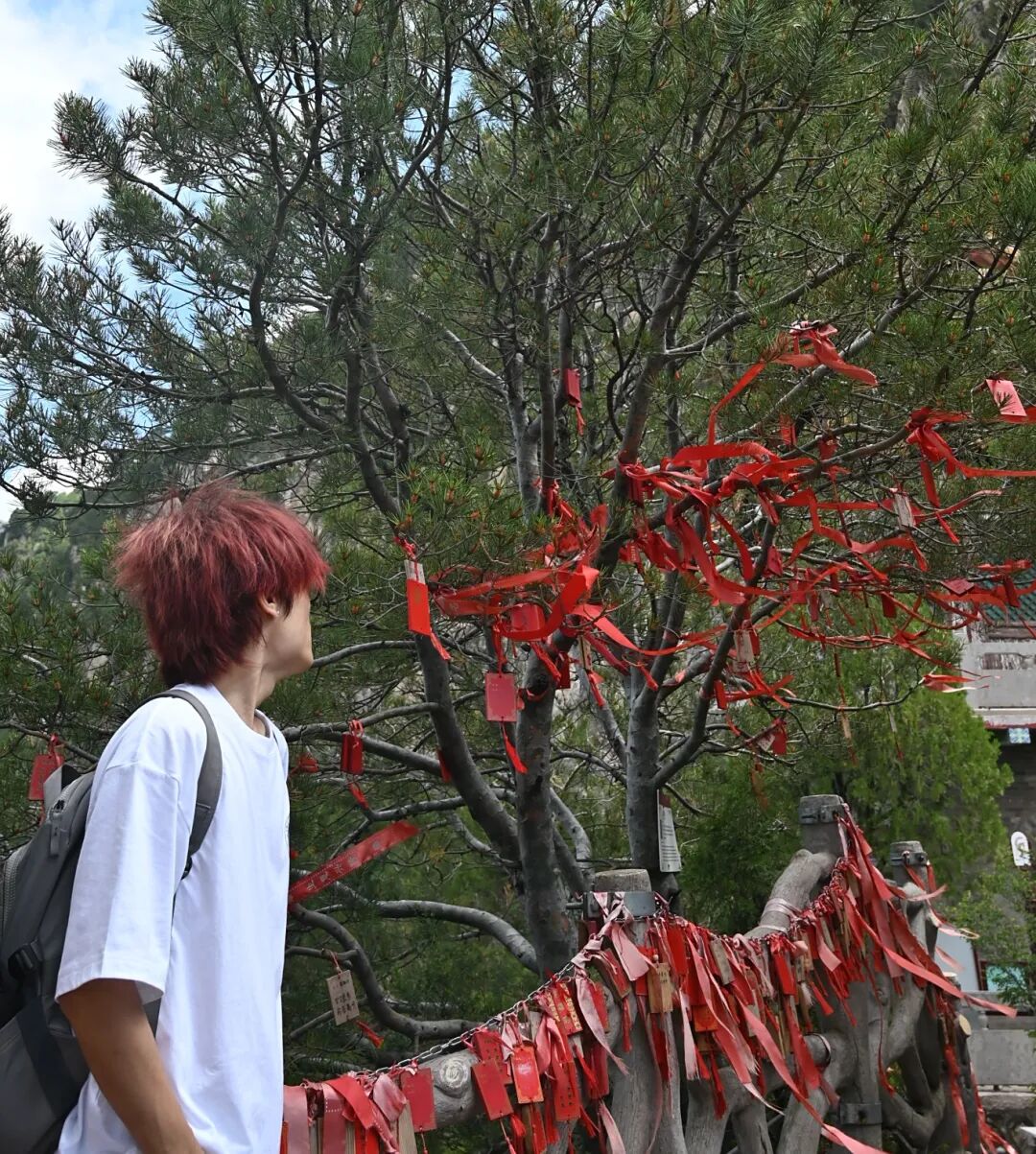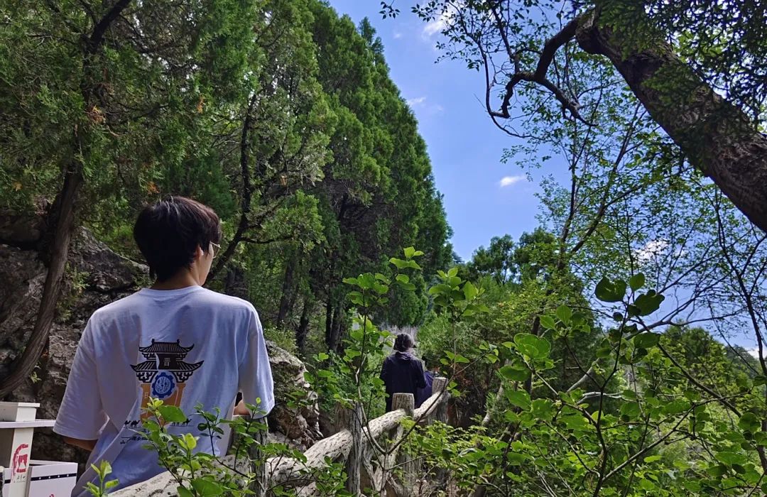 清晨,队员们在宿舍楼下集合完毕后,满怀期待地奔赴天竺景区。面对3700级阶梯,队员们选择徒步攀登上山。一路上,阶梯蜿蜒向上,仿佛与天空相连,山间树木郁郁葱葱,枝叶在微风中轻轻摇曳,为前行的队员们遮挡炽热的阳光,空气中弥漫着泥土与草木的清香,沁人心脾。