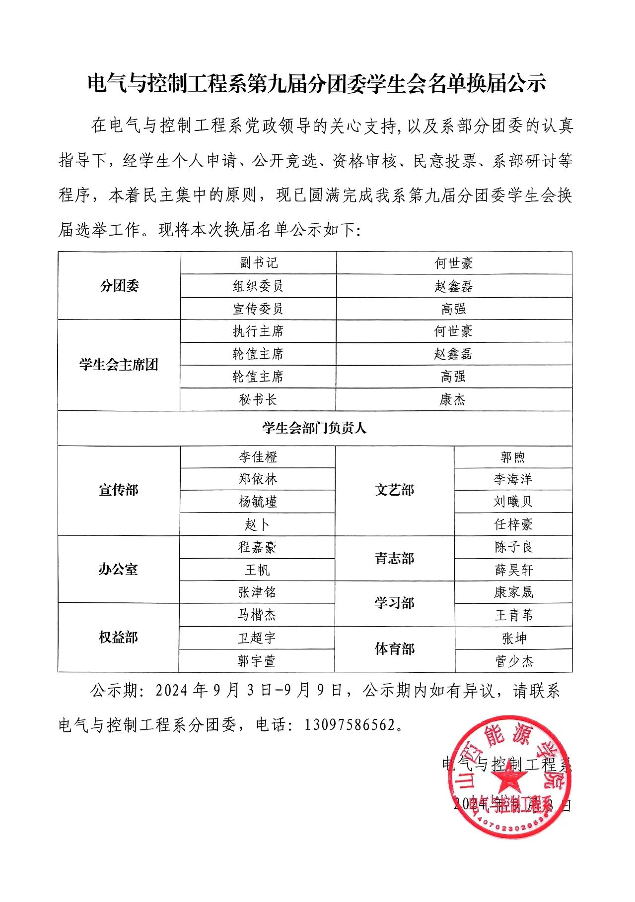电气与控制工程系第九届分团委学生会名单