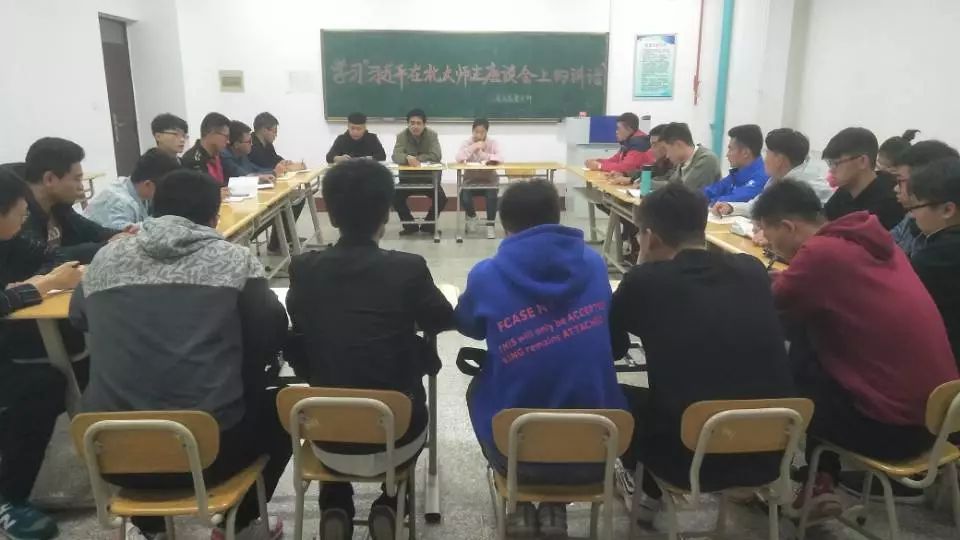 会议第二项,由我系书记刘超群带领大家学习“习近平在北大师生座谈会上的讲话”,书记强调了习近平总书记对广大青年提出的希望:1.要爱国 2.要励志 3.要求真 4.要力行。