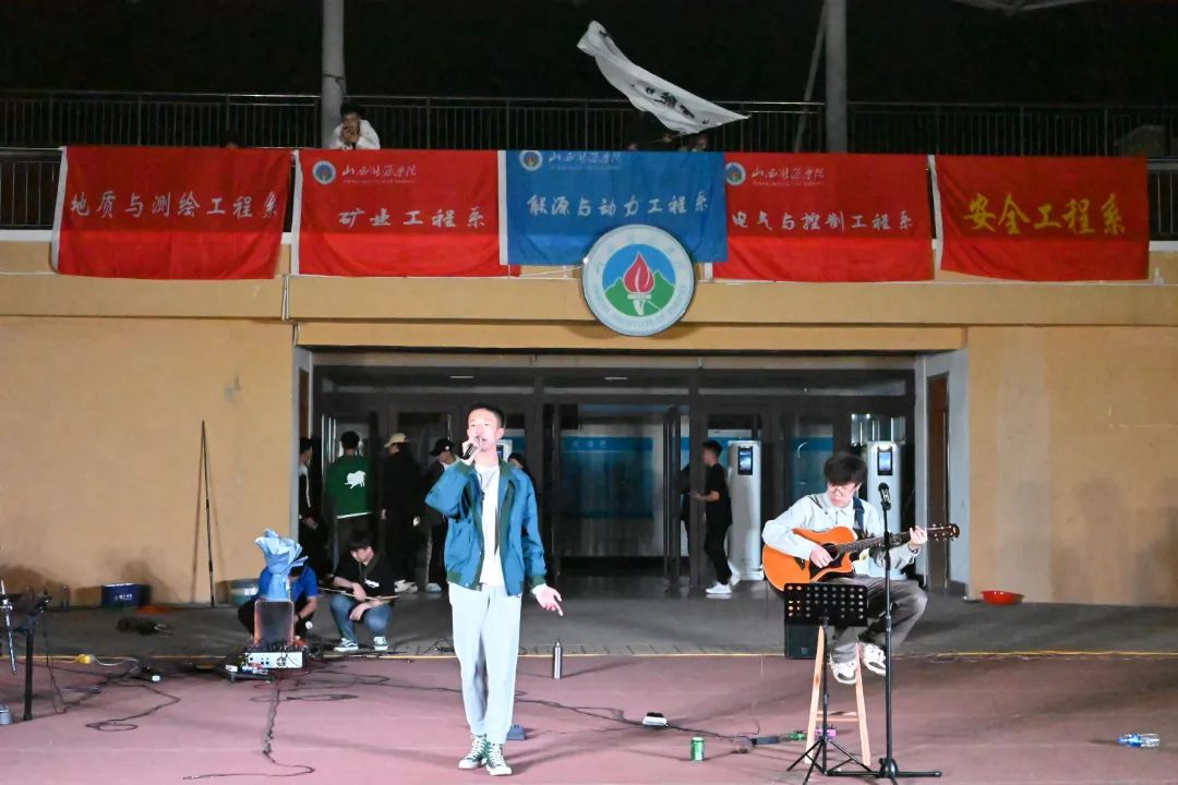 夜幕将至,乐动心声,操场上热闹非凡。微风拂过校园,由电气与控制工程系、矿业工程系、能源与动力工程系、安全工程系、地质与测绘工程系、共同举办的“吾能”音乐节于4月26日晚拉开帷幕。