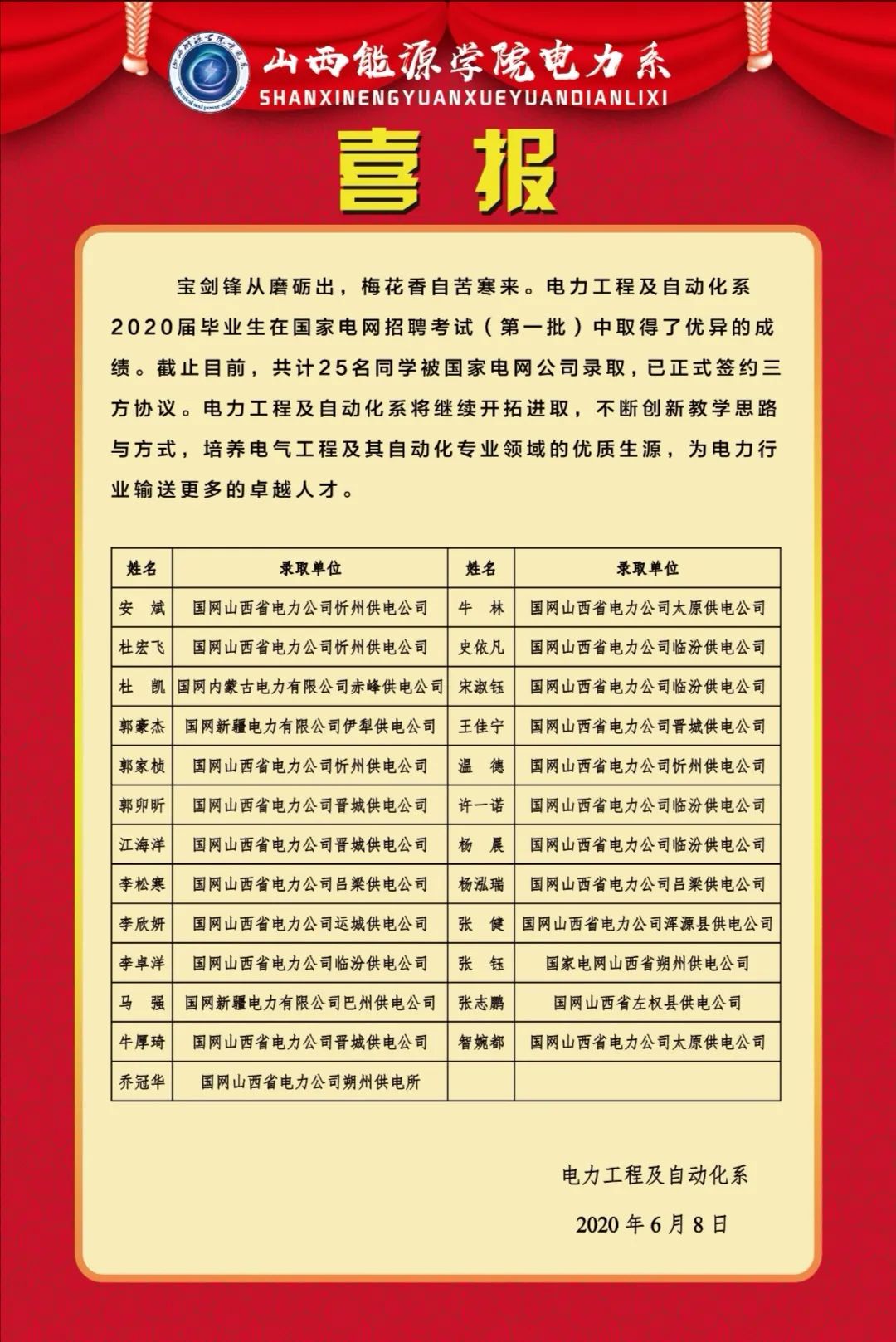 在2020年考试中,电力工程及自动化系的学子们成功渡过了考研和国家电网招聘考试第一批的难关,在此对他们表示热烈祝贺!