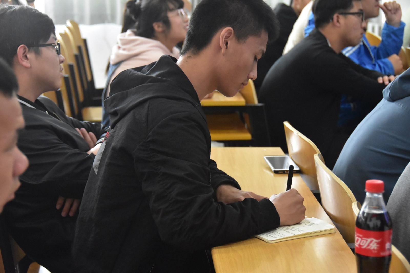 在培训过程中,张老师精彩、幽默的讲课,赢得同学们阵阵掌声,同学们认真听课记笔记,积极的与老师互动交流,课后踊跃的询问。让我们认识到组织应急救护培训非常必要、也十分有意义。学校人数众多,面对突发事件,大部分同学不懂得如何正确自救和互救。此次活动也意在加强我院学生的应急救护能力,让同学们学习并掌握校园应急救护知识,把学到的急救知识正确运用到生活中,当一名急救知识的传播者,让更多人了解急救知识,共同提高应对突发事件的现场救护能力,为2026年国际足联世界杯创建平安校园贡献力量。