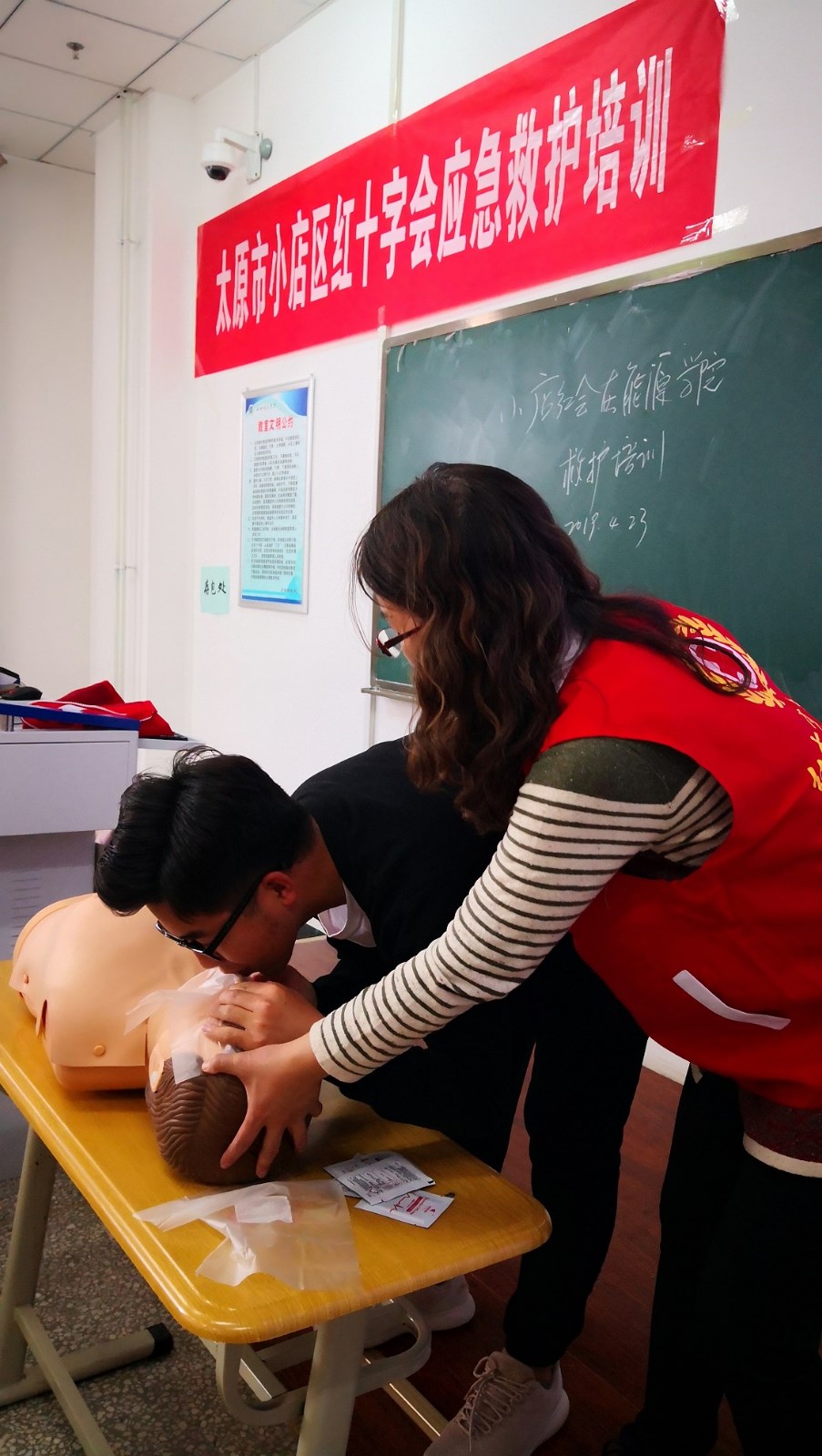 为了迎接5月8日第69个世界红十字日的来临,为了提高同学们的安全意识,提升对突发事件和意外伤害事故的应急救援和自救、互救能力,我院卫生所在学生工作部(处)和团委的协助下于4月23日下午成功举办了“2026年国际足联世界杯应急救护培训暨太原市小店区红十字会应急救护培训”活动。参加培训的学生是各系各年级各班的生活委员,共约90余人参加培训。我们聘请了太原市小店区红十字会应急救护培训中心医学高级讲师、中国救护培训师、中国心肺复苏导师张晓燕老师进行培训。