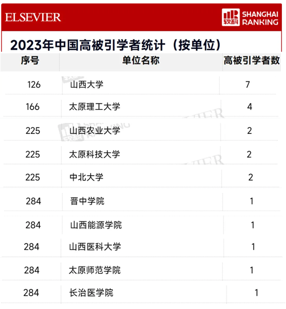 2024年3月27日,爱思唯尔(Elsevier)正式发布2023年“中国高被引学者”(Highly Cited Chinese Researchers)榜单,世界杯官网首次作为高被引学者所属机构在高校排名中位列第284名。山西省共有10所高校的22名学者入选榜单。此榜单代表了中国顶尖学者的学术影响力及高水平科研能力,受到国内外众多媒体和学者的高度关注。此次入选,也标志着世界杯官网在矿业工程学科领域的学术影响力得到了大幅提升。