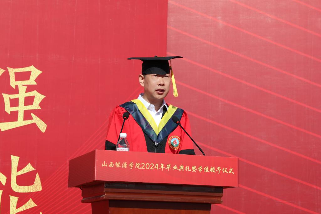 冯院长诚恳地对毕业生提出几点人生建议。一是秉持家国情怀,做堪当民族复兴重任的奋斗者。以黄文秀、申怡飞、刘明侦等优秀人才为榜样,在推进强国建设、民族复兴伟业中展现青春作为,彰显青春风采,贡献青春力量。二是锤炼青春本领,做推动能源产业建设发展的接班人。心怀祖国,心系能源,把个人发展与能源革命的新使命融合起来,在未来的学习和工作岗位上勇挑重担,用实际行动诠释我们能源学子的担当作为。三是永葆赤子之心,做中华优秀传统文化的守护者和传承者。要在以开放的姿态学习了解人类文明成果的同时,更加深入学习了解我们的历史和文化,坚定文化自信,赓续历史文脉,自觉做中华优秀传统文化的守护者、传承者和弘扬者。