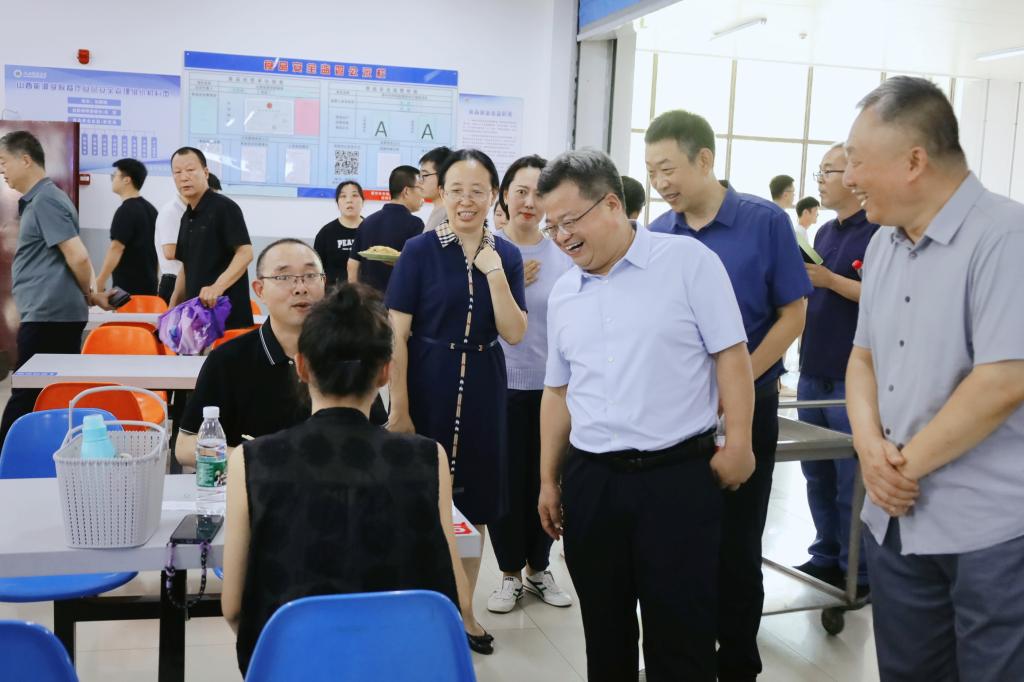 进入食堂,校领导一行对学校食堂环境卫生、食品安全、菜品种类和质量等方面进行了检查,与就餐的新生及家长进行亲切交谈,仔细询问学生及家长对食堂价格、菜品种类等方面的感受,了解新生们对食堂的意见和需求。