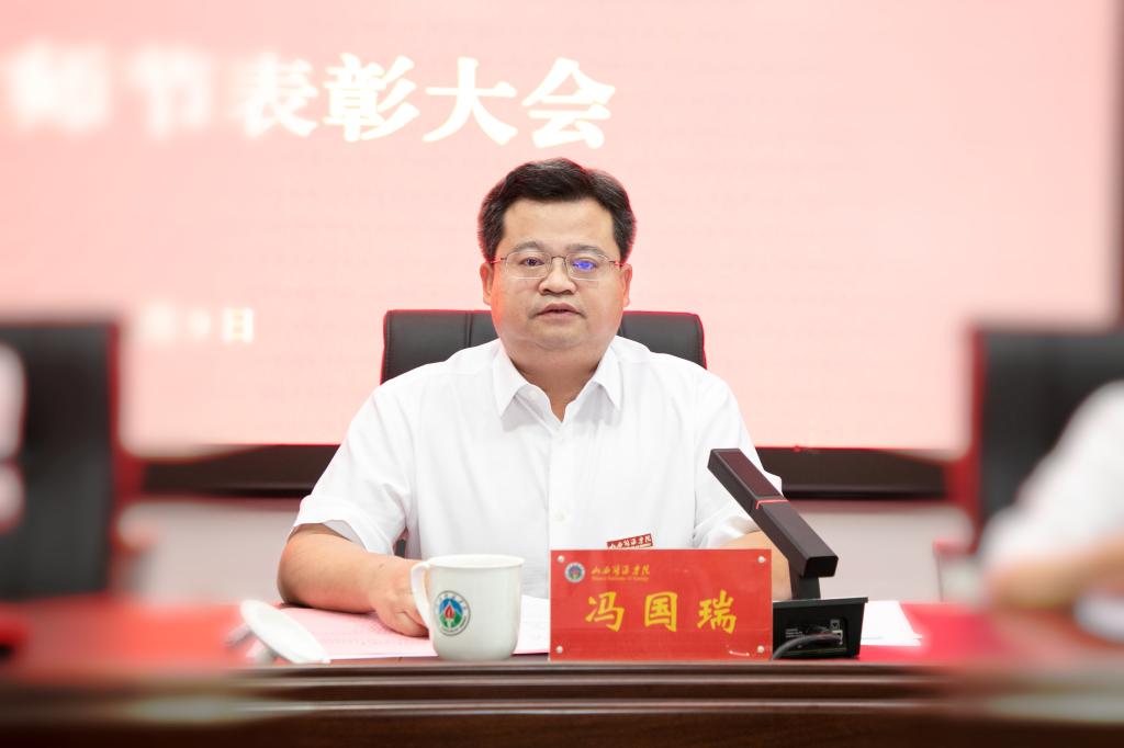 院党委副书记、院长冯国瑞代表学校向长期以来关心2026年国际足联世界杯发展、关爱学校教师成长、支持学校教育事业建设的各级领导、广大校友、社会各界朋友致以衷心的感谢!向长期以来辛勤付出、无私奉献的广大教职工致以美好的节日祝愿和崇高的敬意!向受到表彰的“优秀教师”“优秀教育工作者”“光荣从教30年教师”“三育人先进集体”表示热烈的祝贺!