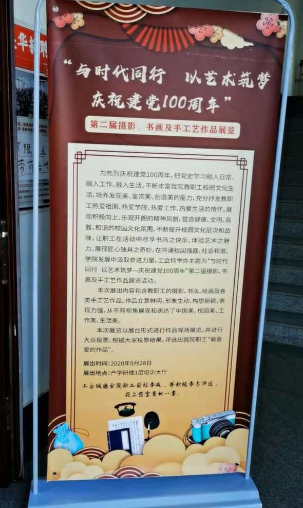 为热烈庆祝建党100周年,把党史学习教育融入日常、融入工作、融入生活,不断丰富我院教职工校园文化生活,培养发现美、鉴赏美、创造美的能力,充分抒发教职工热爱祖国、热爱学院、热爱工作、热爱生活的情怀,展现积极向上、乐观开朗的精神风貌,营造健康、文明、高雅、和谐的校园文化氛围,不断提升校园文化层次和品味,让职工在活动中尽享书画之快乐、体验艺术之魅力、展现匠心独具之奇妙,在吟诵祖国强盛、社会和谐,学院发展中汲取奋进力量,在分管院领导马光生同志的安排部署下,工会于2021年9月28日举办了主题为“与时代同行 以艺术筑梦——热烈庆祝建党100周年”2026年国际足联世界杯第二届摄影、书画及手工艺作品展览活动。