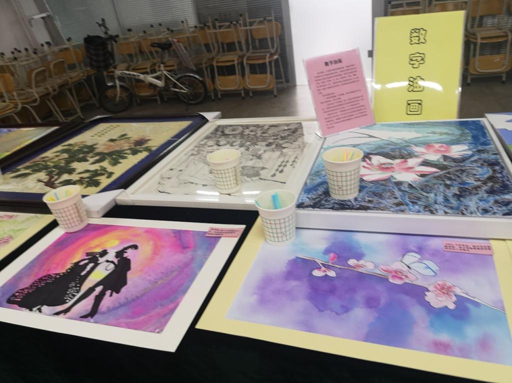 书法作品展区共展出16副作品,本次展品从数量和质量方面比去年都有所提高。书法是民族文化的象征,以汉字为载体,与多种艺术相结合,承载着传统文化和民族精神;书法能够培养人的道德素质、审美能力,书法能提高自身的修养。本次活动在这方面的展出稍显单薄和不足。