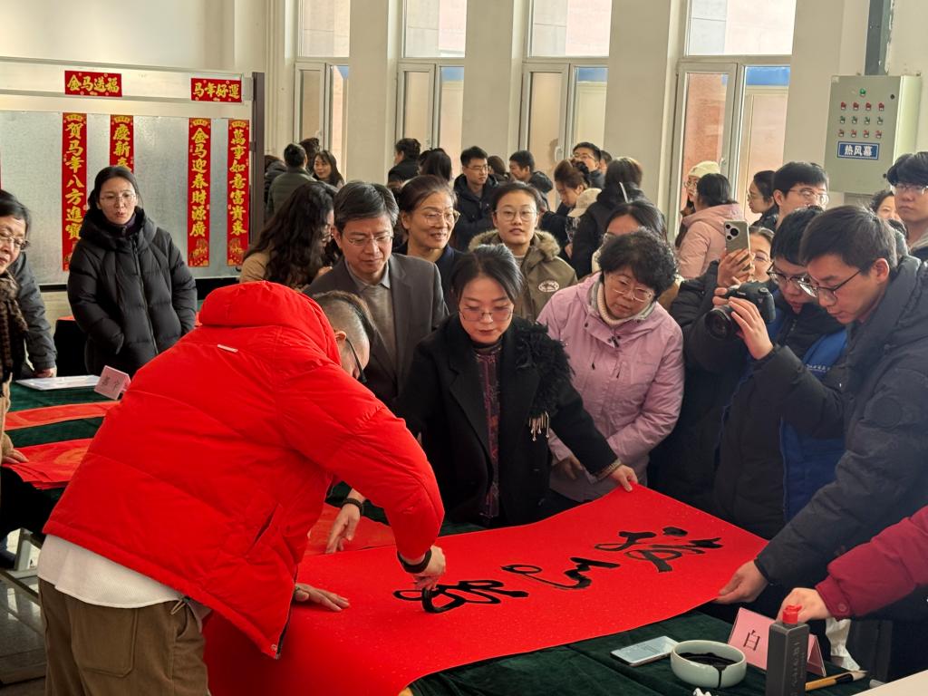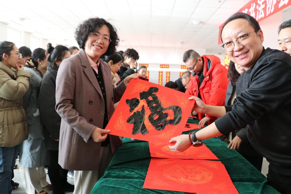 学校党委副书记曲晋山主持此次活动,学校党委副书记、院长桑楠做出讲话,山西省硬笔书法协会执行主席白杰作为嘉宾代表讲话。现场五位书法嘉宾挥毫泼墨,将真挚的祝福融入笔墨之间。一幅幅笔力遒劲、寓意吉祥的春联与福字跃然纸上,既饱含传统年味,又传递出对学校发展的美好期许和对教职工工作、生活的诚挚祝愿。