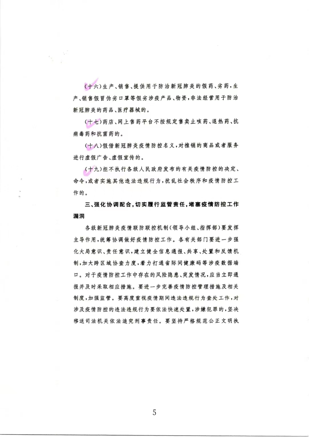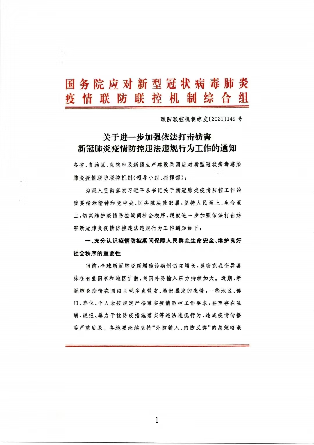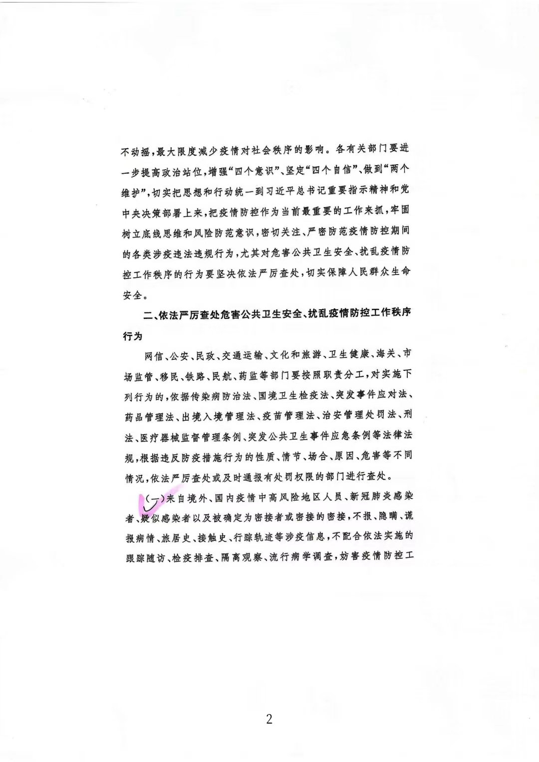 关于进一步加强依法打击妨害新冠肺炎疫情防控违法违规行为工作的通知