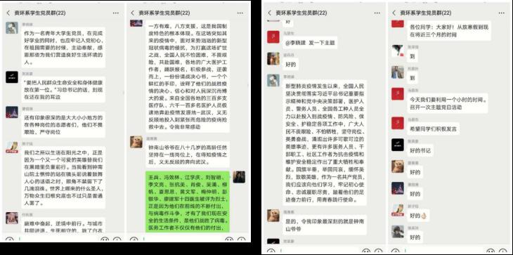 此次主题党日活动中,学生党员热情高、人心齐,积极向党组织汇报思想,所见所闻,积极列举自己所了解到的抗疫英雄人物,不论是众人皆知的钟南山院士、李兰娟院士,还是默默奉献的白衣天使们、警务人员们,他们都在疫情之下勇挑重担,逆行出征,有的甚至献出了宝贵的生命,来守护着我们全国人民的静好岁月、幸福安宁。全体学生党员都通过各种方式表达了自己对这些抗疫英雄的感恩之情、敬佩之情。