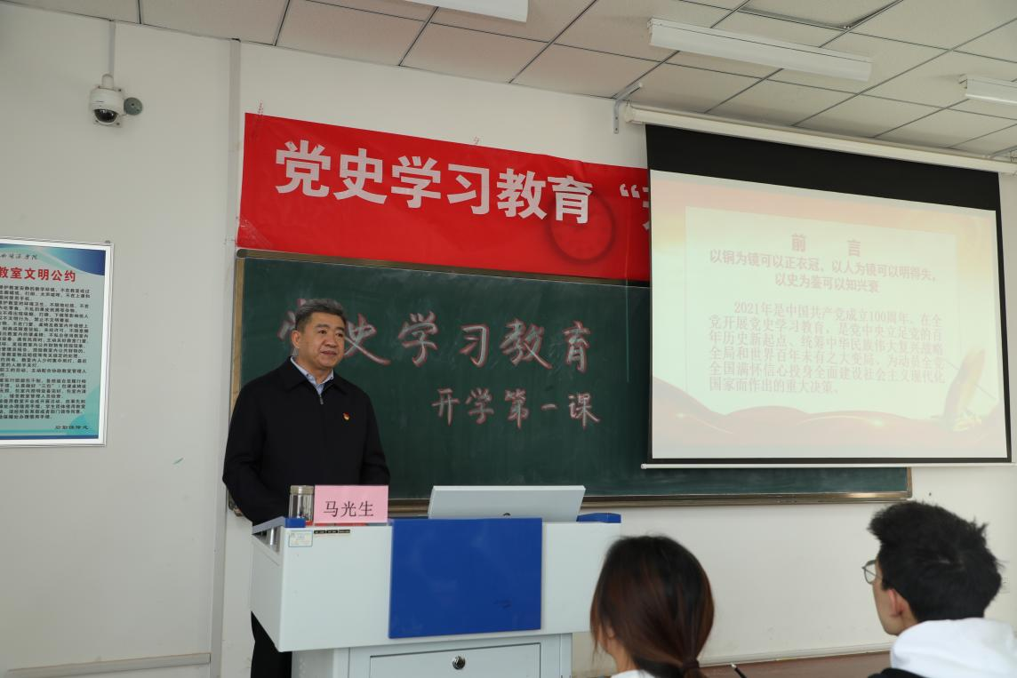 2021年3月25日上午9:00,学院党委副书记马光生书记到联系系部资源与环境工程系为师生讲授党史学习教育专题党课。党课在综合楼202教室举行,资源与环境工程系党总支书记马蔚东书记、专职辅导员、专职组织员、2019级学生代表40多人聆听了党课讲授。学院党史学习教育领导小组办公室杜一波参加聆听。
