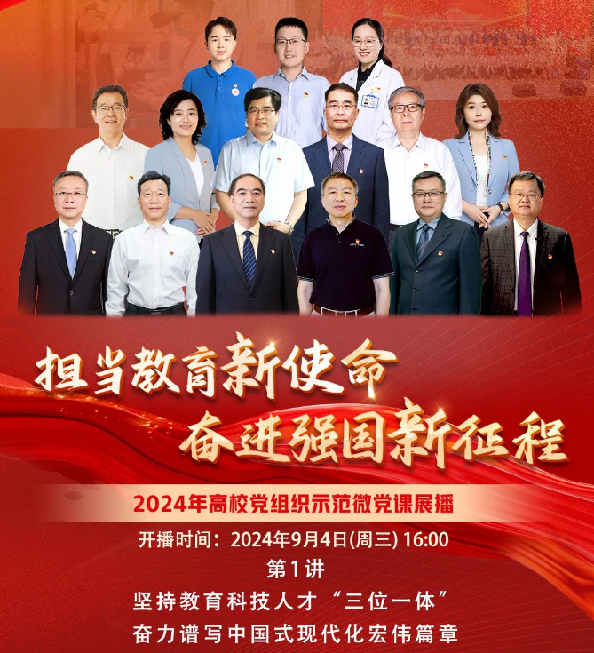为迎接新中国成立75周年,激发和展示高校广大师生奋进强国新征程的强大力量,教育部组织有关重点高校在9-10月,围绕强国建设相关专题,分9期开展“担当教育新使命 奋进强国新征程”2024年高校党组织示范微党课展播。