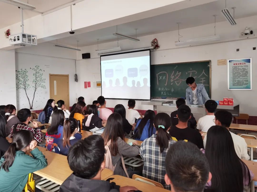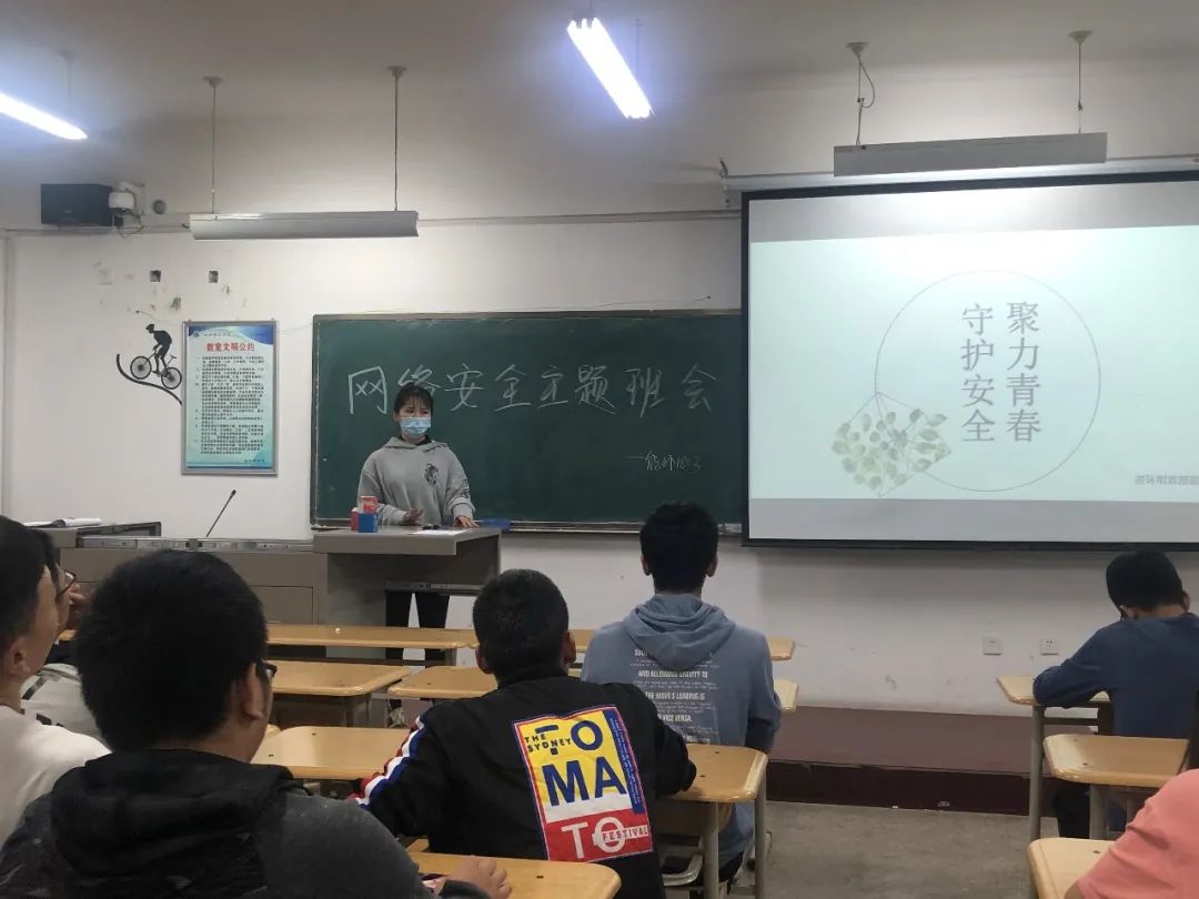 为预防网络诈骗,我系组织各班围绕网络安全开展主题班会,将以上内容由班长讲给同学们,提高我系同学的安全意识。