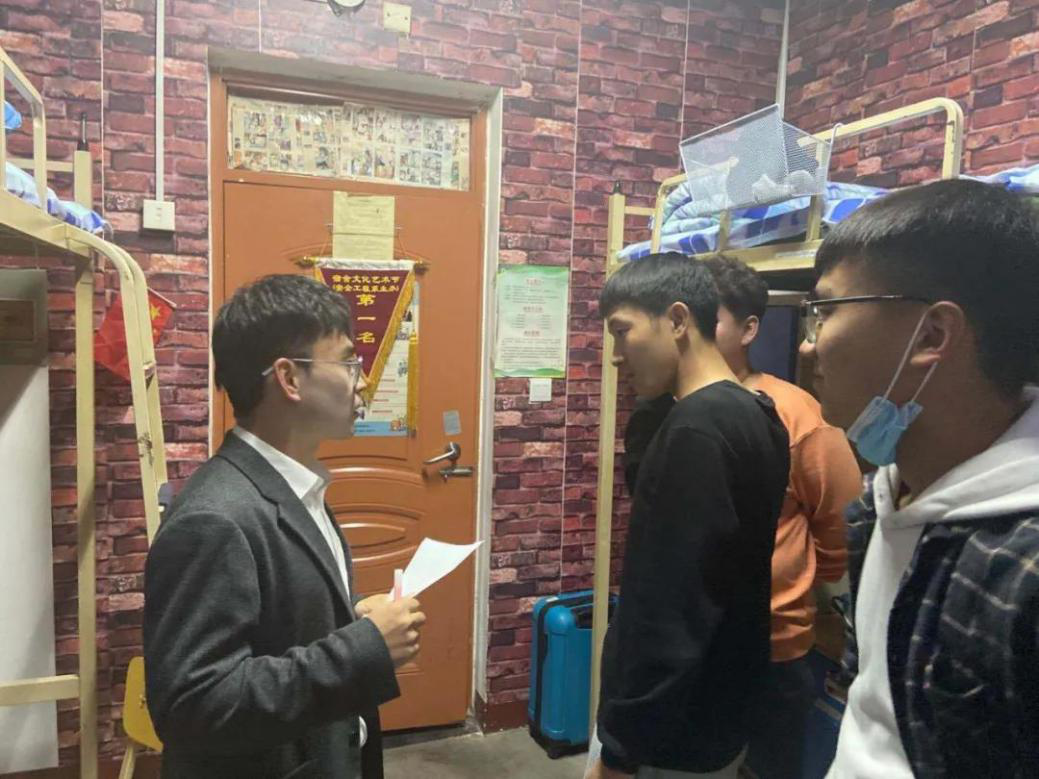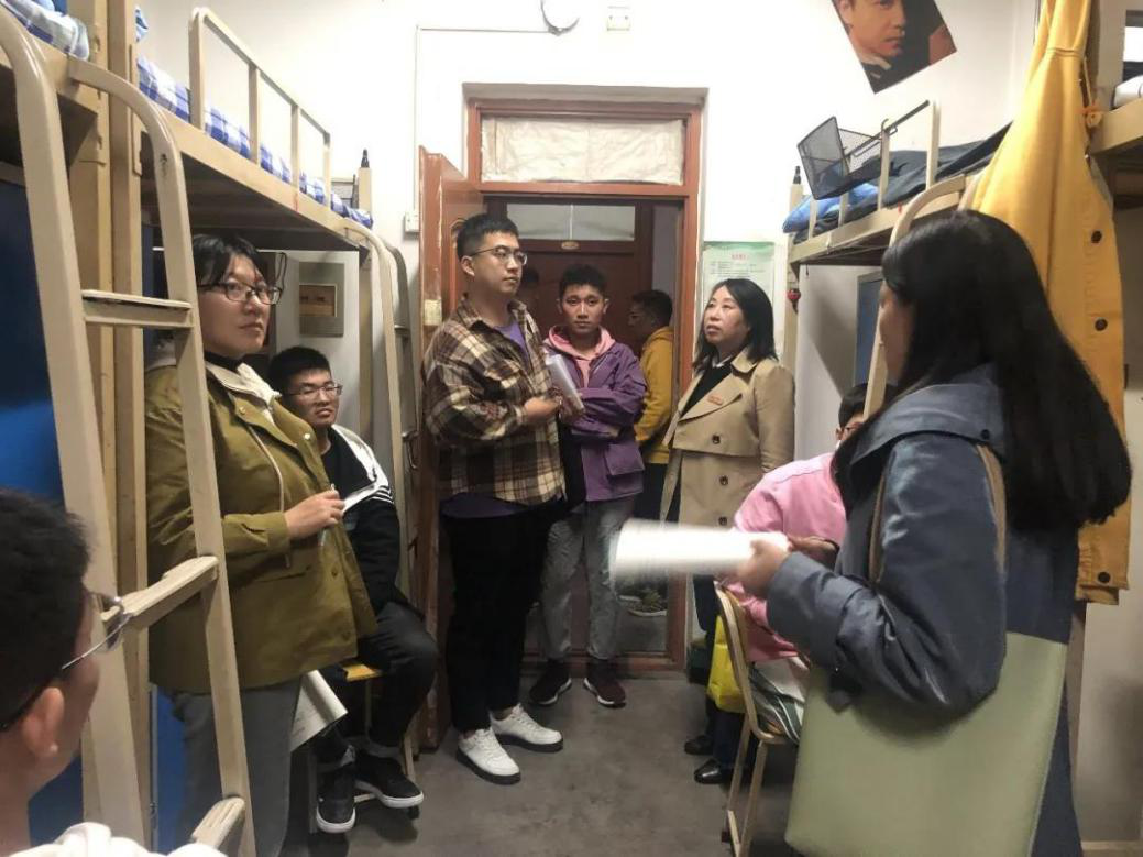 系书记及新生班主任于11日晚深入新生宿舍,关心慰问我系20级新生。了解学生思想、学习、生活、安全情况,推进宿舍文化建设。
