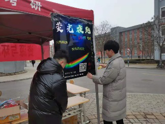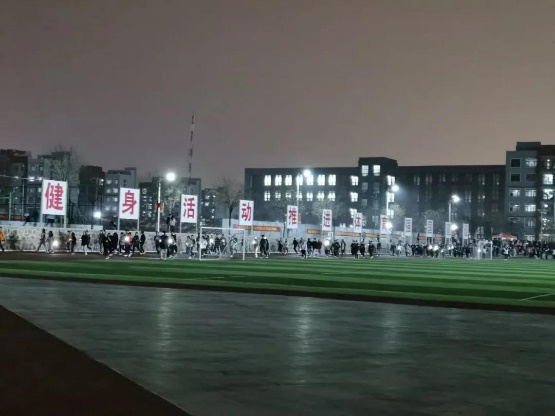 参与学生首先通过参加小游戏,添加公众号的方式取得荧光棒、荧光饰品、涂抹荧光粉等;打开“运动世界校园 APP”,点击计分跑开始跑步。按照规定路线、规定配速跑完全程(如没按照要求,则跑步不予录入总成绩),跑步完成后长按结束键,按提示完成验证操作,验证成功后跑步成绩有效。“运动世界校园APP”活动当晚6:30~8:30成绩翻倍(例A今晚成绩为2公里,则计入成绩为4公里)最高计入6公里。)在工作人员的带领下绕着操场跑圈进行荧光夜跑,顺利完成任务后,在操场跑道入口帐篷处兑换神秘礼品。