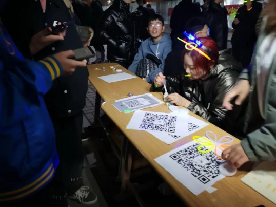 伴随着主持人的开场介绍,同学们的情绪逐渐高涨,在808嘻哈工厂的助兴表演后,活动正式开始,动感的音乐响起,荧光点亮了山能校园。