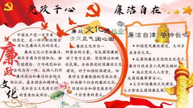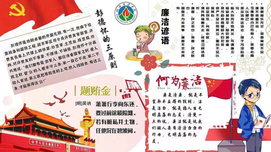 为深入贯彻落实党的十九届五中全会和十九届中央纪委五次全会、省纪委十一届七次全会精神,围绕庆祝党百年华诞,系统学习党史,弘扬优良作风,教育引导我学生强化政治意识、纪法意识,推进校园廉洁文化建设,营造崇廉拒腐的校园环境,我校资环系特响应学校号召,开展班级廉政文化电子版板报大赛。