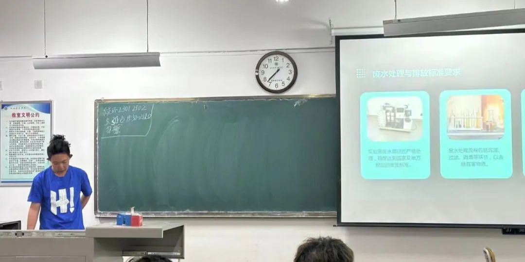 消防安全同样是实验室安全的重要组成部分。张志成同学从灭火器材的种类、使用方法、潜在隐患、火灾报警系统的操作以及疏散逃生路线的规划等方面,为全班学生普及了消防安全知识,进一步增强了大家的安全防范意识。