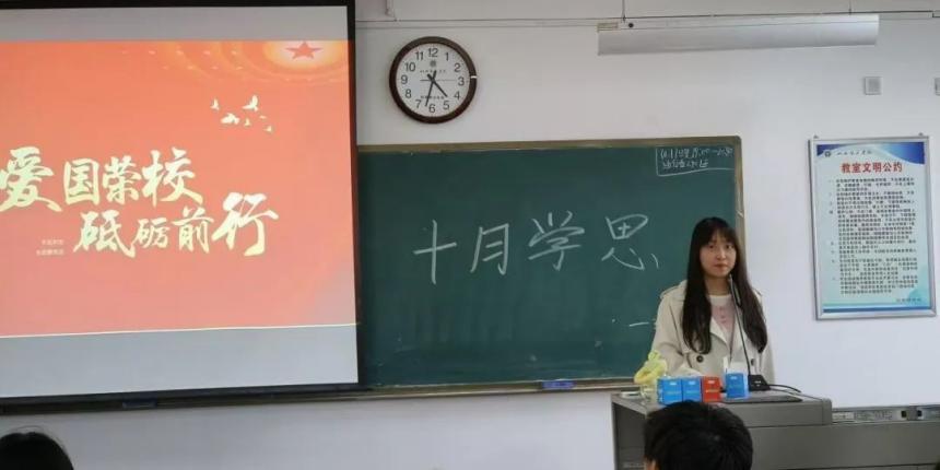为热烈庆祝中华人民共和国成立75周年,深入学习贯彻习近平新时代中国特色社会主义思想,弘扬爱国主义精神,激发同学们的爱国热情,增强民族自豪感和使命感,环设2301班于2024年10月17日开展了“爱国荣校,砥砺前行”主题学思活动。