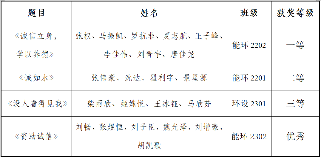 依据原创性、主题深度、文笔流畅度和思想启发性等评审准则,现将资环系资助诚信主题征文比赛的获奖名单公示如下: