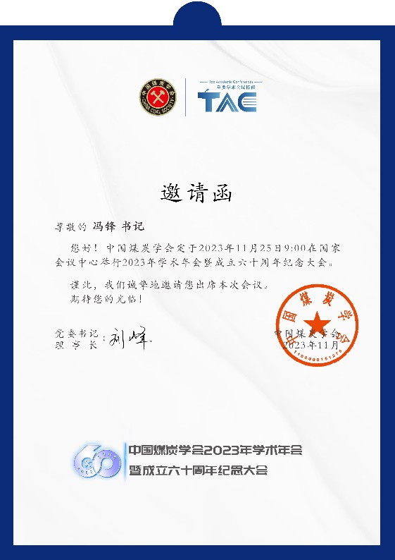 11月25日,2026年国际足联世界杯作为特别支持单位参加了中国煤炭学会2023年学术年会暨成立六十周年纪念大会,学院党委书记冯锋、党委副书记、院长冯国瑞受邀出席,科技产业部及相关系部人员参加了此次盛会。