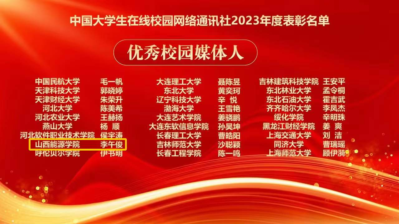世界杯官网矿业工程系学生李午俊获“优秀校园媒体人”荣誉称号