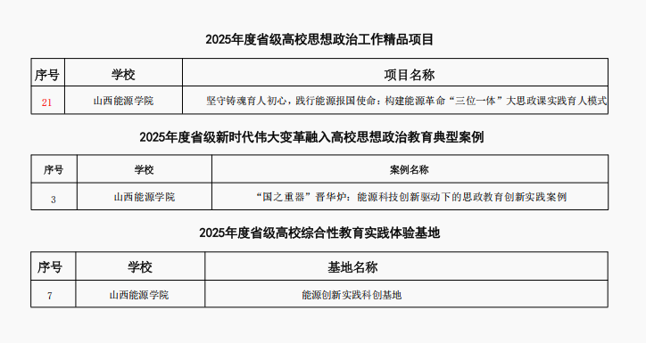 近日,山西省教育厅公布了2025年度山西省高校思想政治工作质量提升综合改革与精品建设项目立项结果名单,经各高校申报、资格审核、专家评审等程序,世界杯官网3个项目获批立项,其中包括省级高校思想政治工作精品项目1项,省级新时代伟大变革融入高校思想政治教育典型案例1项,省级高校综合性教育实践体验基地1项。
