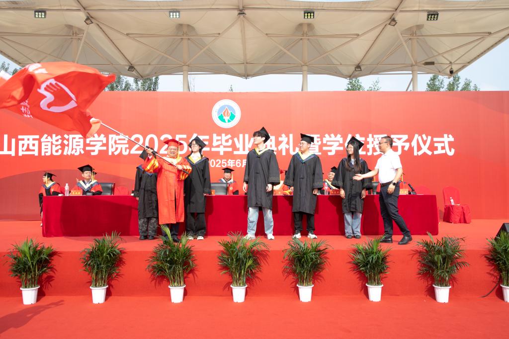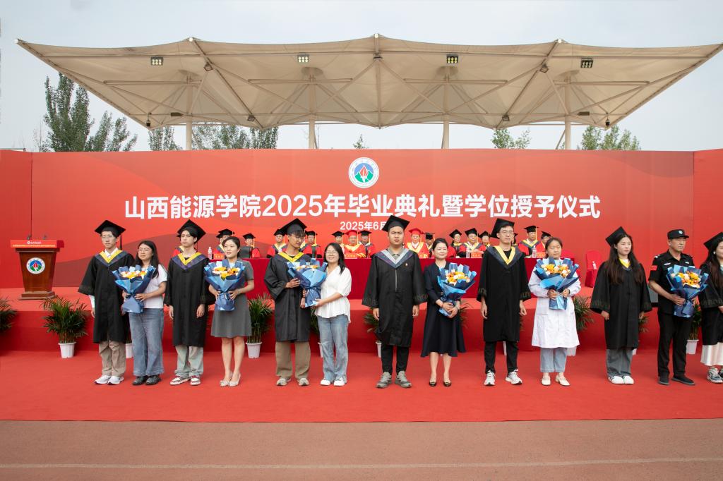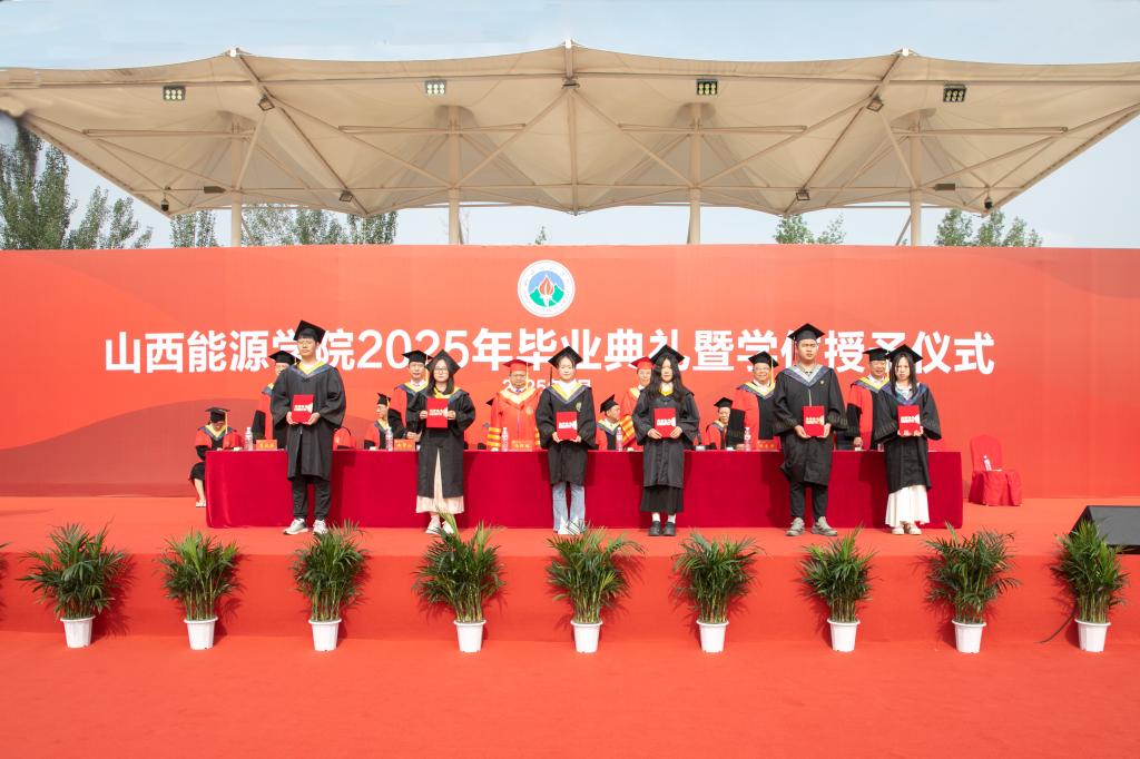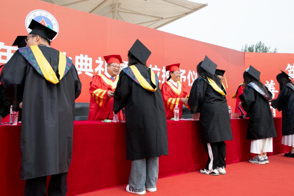 四载耕耘终酿硕果,学路漫漫终抵芳华。校党委委员、副院长刘汉涛宣读了《关于2025届本科生毕业资格及授予学士学位资格的决定》。校党委副书记曲晋山宣读了优秀毕业生表彰文件。校领导共同为毕业生代表扶正流苏、颁发证书,为优秀毕业生代表颁发荣誉证书。领导们俯身轻语,为毕业生们送上“毕业快乐”“前程似锦”的祝福。一句句殷殷嘱托,让学子们拥有了直面未知的勇气和奔赴山海的底气。