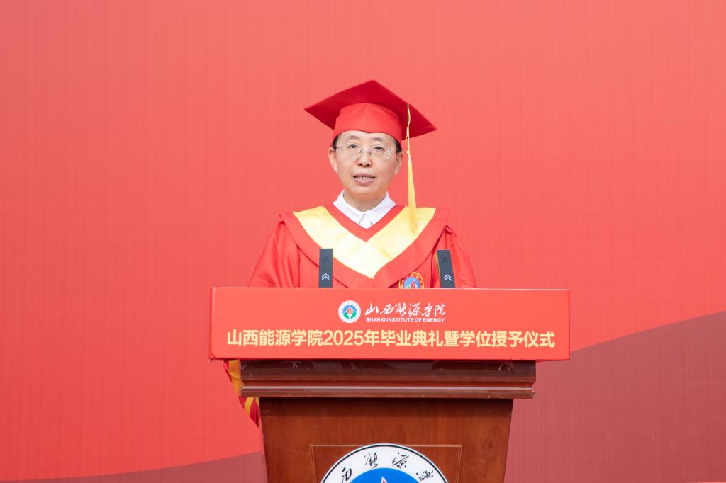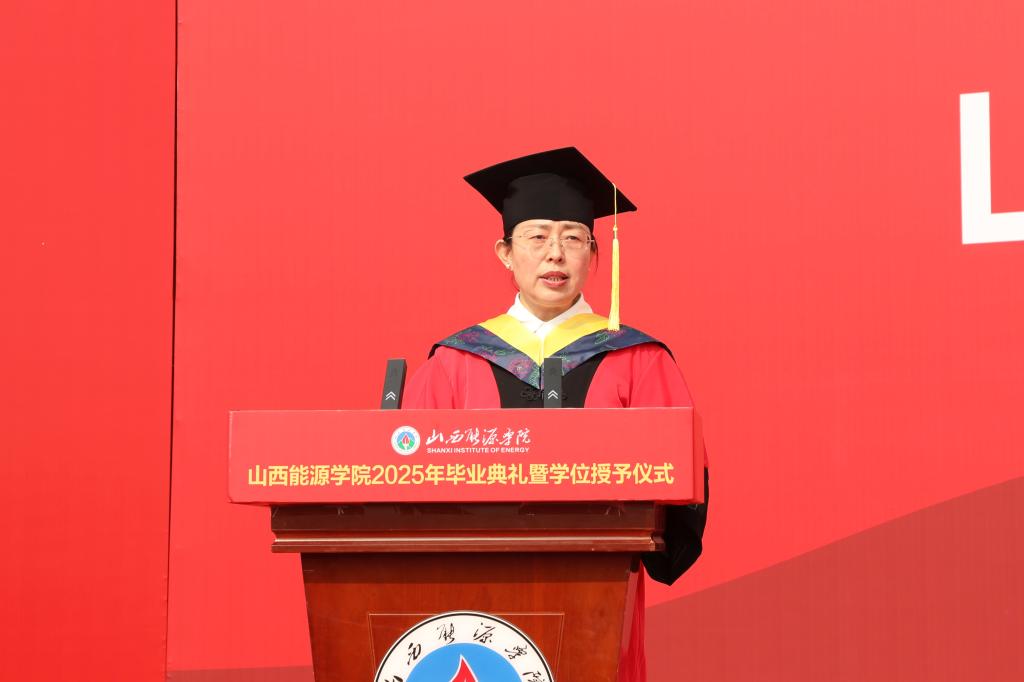 校党委副书记、院长桑楠代表学校向圆满完成学业的全体毕业生表示祝贺,向为同学们成长付出辛勤汗水的老师家长们致以感谢。她深情回望了学生们在学校的点点滴滴,历数了学生们在学科竞赛、社会实践、升学就业等方面取得的佳绩。她说:当同学们奋斗的青春结出硕果时,学校也完成了蜕变升级。从教学科研与师资队伍建设的跨越式提升,到顺利通过本科教学工作合格评估。每一项突破,都是学校与大家共同成长的勋章,更是学校未来征程中最坚实的基石。