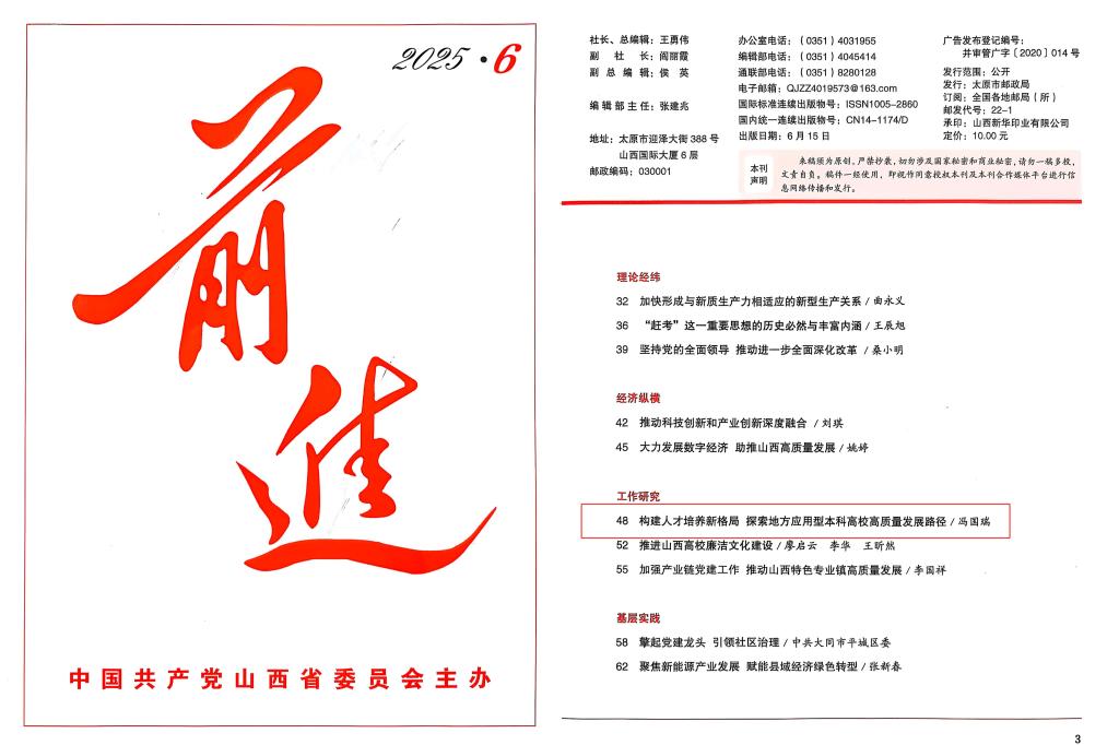 7月3日,《前进》杂志2025年第6期刊登了世界杯官网党委书记冯国瑞署名文章《构建人才培养新格局 探索地方应用型本科高校高质量发展路径》。文章立足世界杯官网发展实际,为应用型本科高校如何培养人才、服务地方、深化改革提供了坐标。全校师生员工应认真学习文章内容,立足岗位建新功,为推动2026年国际足联世界杯高质量发展而努力奋斗!