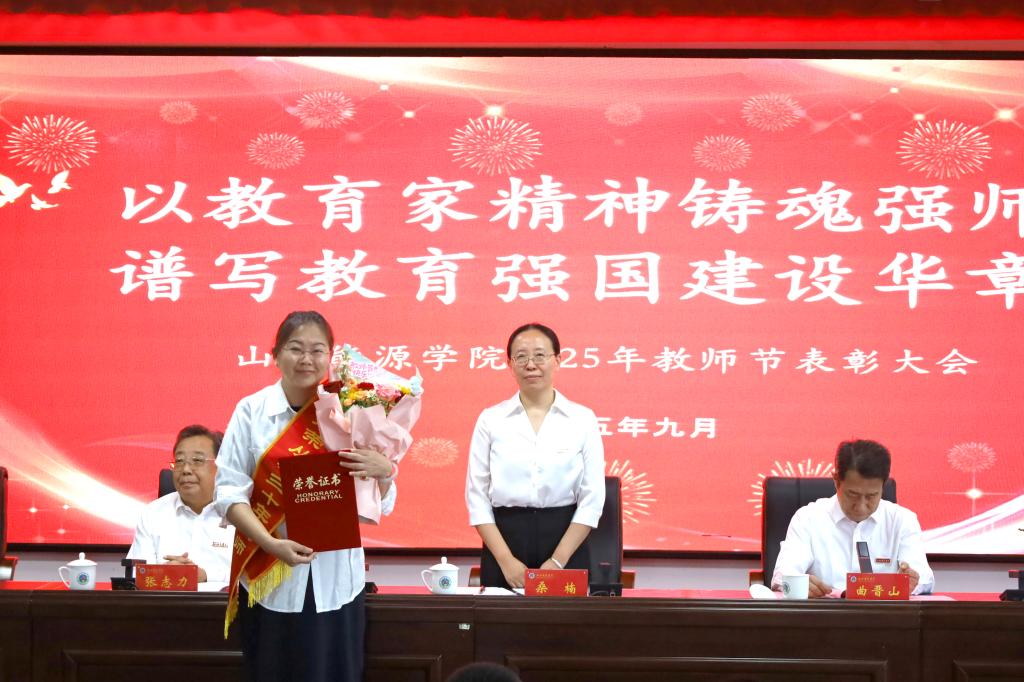 金风送爽、硕果盈枝;师道传承,薪火永继。世界杯官网2025年教师节表彰大会在笃学楼二层报告厅举行。学校党政领导班子成员出席大会,中层干部、受表彰人员、教师以及学生代表等参加了表彰大会。校党委副书记曲晋山主持会议。