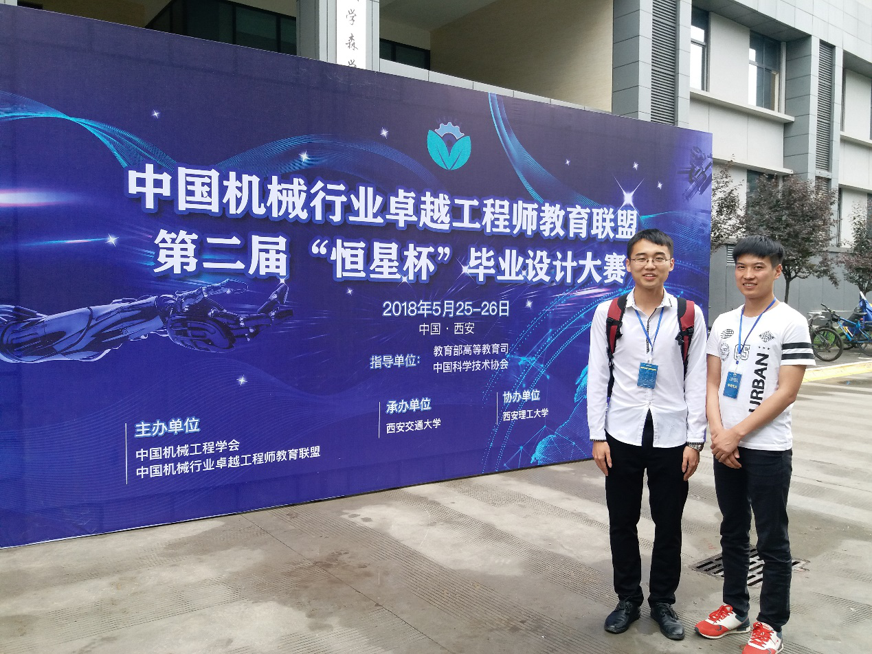 2018年5月25日-5月26日,在教育部高等教育司指导下,由中国机械工程学会和中国机械行业卓越工程师教育联盟共同主办、西安交通大学和西安理工大学承办、恒星集团冠名赞助的第二届中国机械行业卓越工程师教育联盟“恒星杯”毕业设计大赛决赛,在西安交通大学举办,我院机电工程系学生组团参加,取得佳绩。