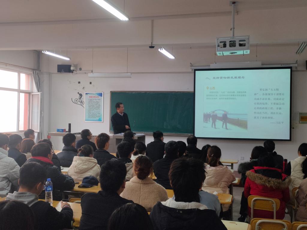 11月24日下午,学院党委副书记张春有在一号教学楼四层教室,为安全工程系师生宣讲党的十九届五中全会精神并讲授思政课。党委委员、宣传统战部部长张玉福, 党委委员、学生工作部(处)长辛书贤随同。安全工程系书记郭辉主持,系主任李清俊及班子成员、全体教师、学生党员及1801班全体同学参加。