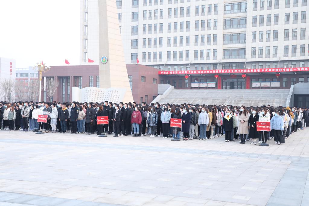 3月8日,学院在迎宾广场隆重举行了新学期首次升国旗仪式。升旗仪式后,院党委书记董峰为师生讲授了以党史学习教育为内容的“开学第一课”。参加此次升旗仪式的有院领导、党委委员、各党总支、直属党支部书记、各部门负责人、专职辅导员、专职组织员、分团委书记、学生代表三千余人。仪式活动由院党委副书记张春有主持。