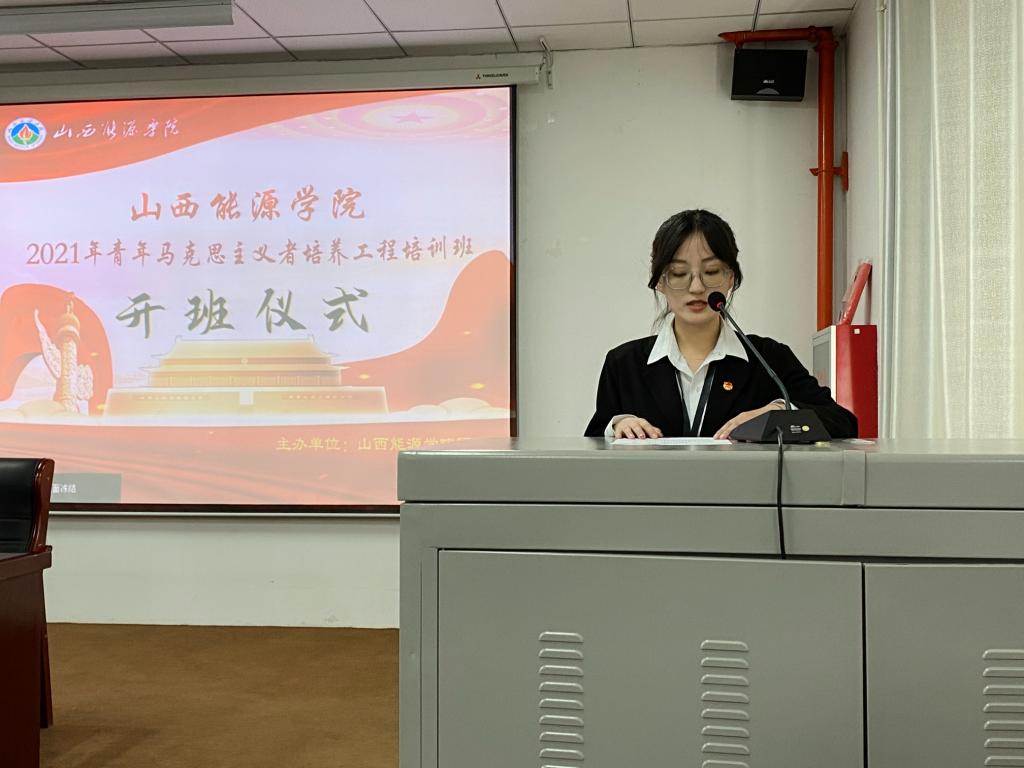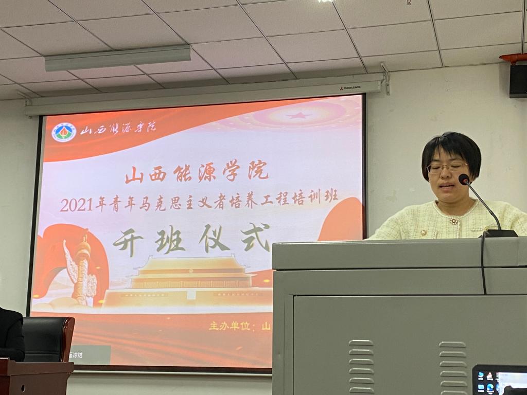 4月13下午,我院2021年青年马克思主义者培养工程培训班开班仪式在综合楼一层东报告厅隆重举行。院党委副书记张春有、党委委员组织部部长韩树霞、党委委员学生工作部部长辛书贤、思政部负责人张东安及各系部分团委书记、本期培训班老师和全体培训班学员参加了开班仪式。本次开班仪式由院团委书记郑文靖主持。